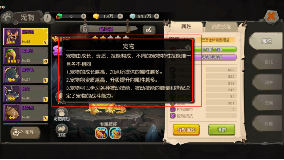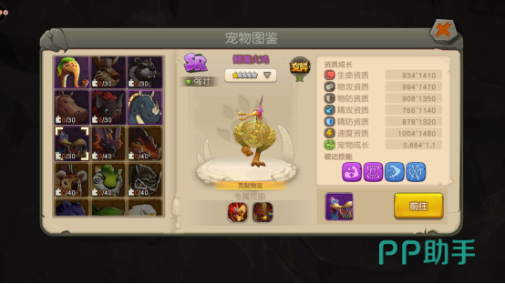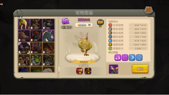 最后是SSR级宠物,SSR级宠物是橙色宠物,属于非常稀有的宠物,所以获取难度可想而知,当然氪金玩家除外。SSR级宠物共有十二只,有三个专属技能。当中鱼尾豹最为稀有,它的属性是坚韧,属于克制高防的宠物。克制高防是十分稀有的属性,所以即使是氪金玩家也是比较难获得这个宠物。