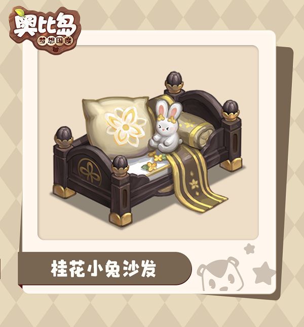 桂花小兔沙发是有着别致造型的座椅,上面不仅有柔软的靠枕还放置了一直可爱的桂花小兔,温馨又精美。它的获取途径也是星愿卡。