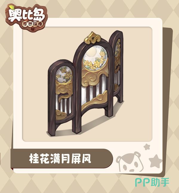 另外一个需要卡才能获取的家具是月桂屏风,这个屏风上面采用了古典高雅的祥云浮雕,搭配上象征中秋的圆月造型和桂花,经典的中秋气息扑面而来。