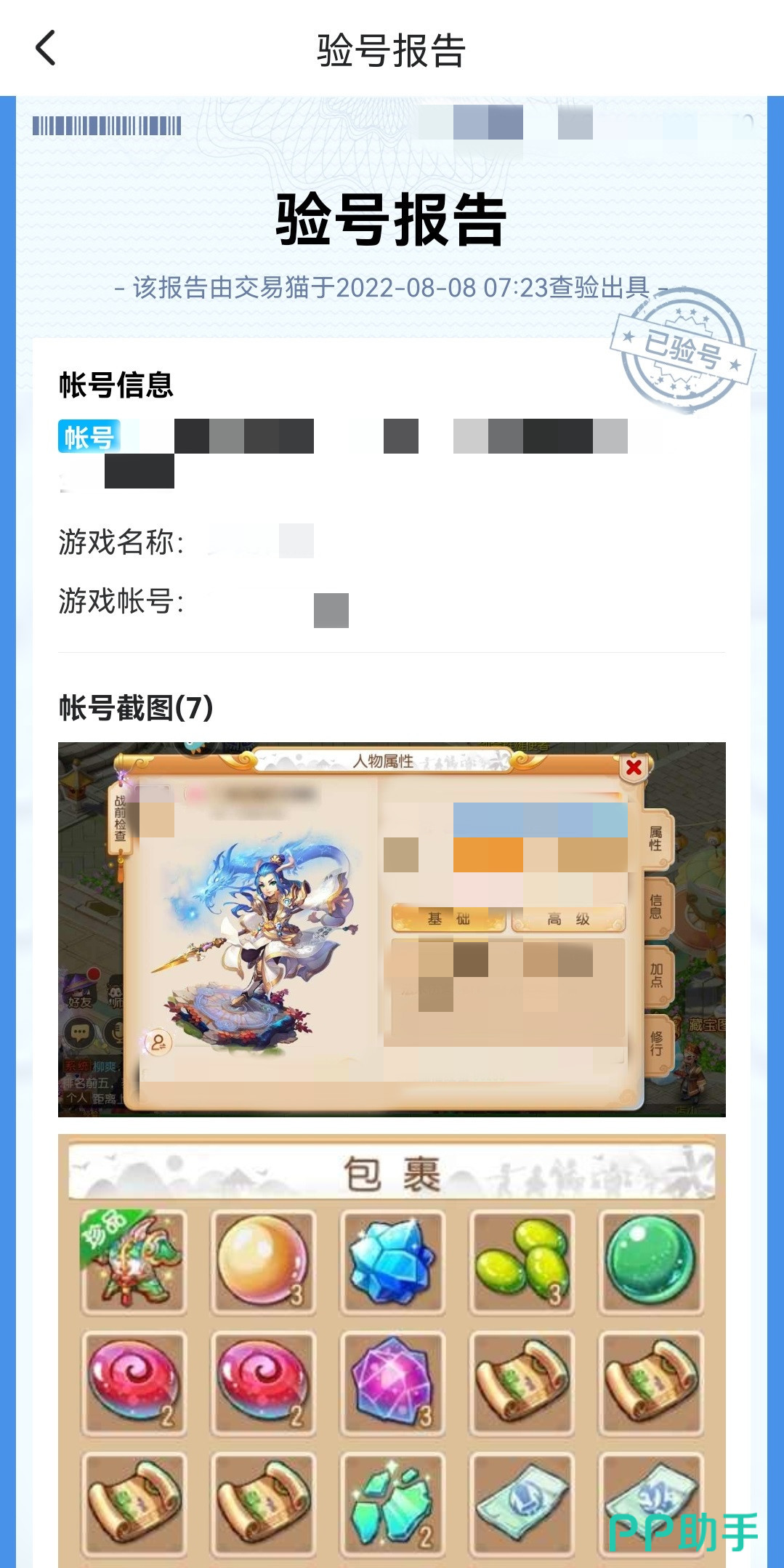 为了彻底解决账号中实际和卖家的宣传不符合的情况,交易包采用的是平台验号的方式。在账号上架之前,卖家可以直接选择智能验号,由第三方工作人员登录账号进行检验,如果确定真实性无误就可以生成一个有权威性的验号报告,并且以截图的形式将账号内有价值的信息展现出来。