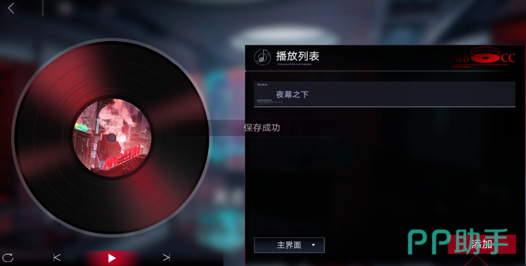 最后在小伙伴们切换完歌曲以后,再一次的返回到唱片机页面,在它的左下角有一个主界面的显示功能,大家点击一下就可以为主题背景进行音乐的切换了。