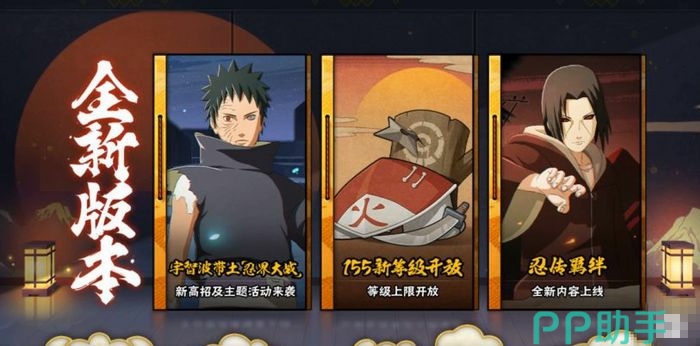 九月火影大版本来袭,上架了带土十连抽活动,必得忍战带土碎片,还有幸运夺宝活动总共上架八个高战a碎片千万不要错过,并且等级上线将调整为一百五十五级还有忍传羁绊等新内容敬请期待,并且还会返厂恶灵之影飞段,忍战带土上线秽土柱间就会下架,广大玩家是不是都很期待呢。