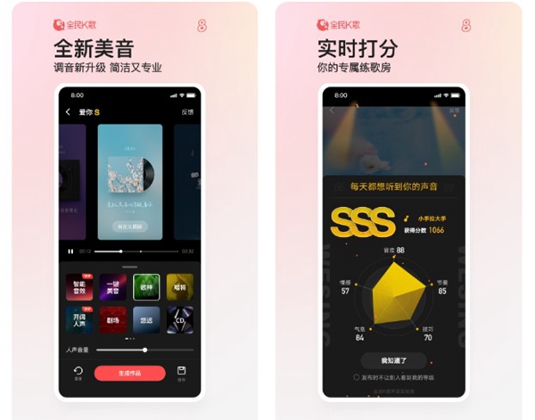 酷狗旗下的ktv软件,不仅是带有大量独家的曲目可以挑战,而且软件中的伴奏品质相当高,通过智能打分也能够和家人一起同台竞技pk。我们能够为自己的作品添加一些专业的音效,做到修音或者是让声音更有磁性。