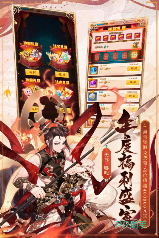 它根据西游记剧情改编,呈现神、魔、人三界冒险,玩家收集二郎神、牛魔王、孙悟空等角色,组建阵容策略卡牌对抗,前往龙宫、天宫、雷音寺等不同场景执行任务。