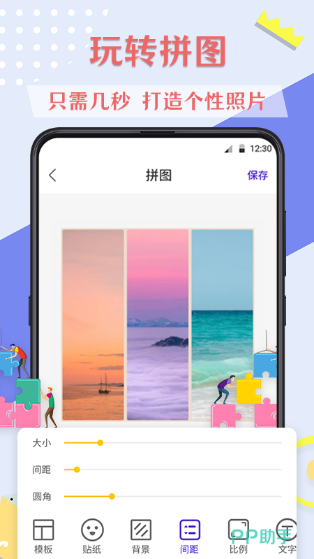 软件操作简单,专为新人设计,快捷拼图和智能抠图,一键添加不同特效、贴纸、滤镜等,打造专属排版和个人样式,快速图像合成和镜像设定。