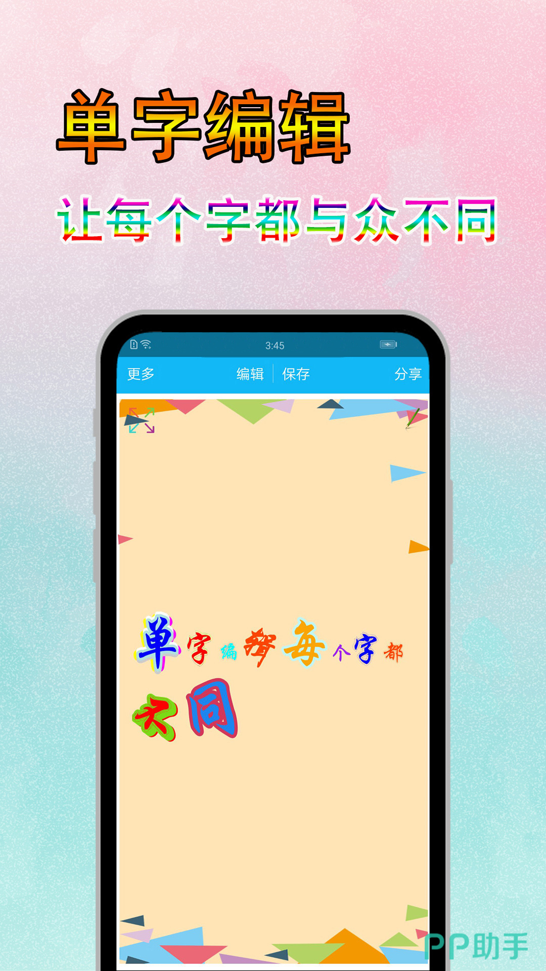 软件轻松快捷设计不同字体样式,打造独一无二文字,营造出气泡字体、圆形字体、ACY手写字体、毛笔楷书字体等,制作出一连串字体样式。