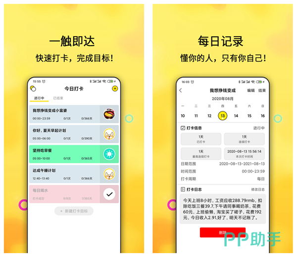 能够帮助我们合理规划时间并且养成自己的好习惯,软件的特色是除了能够帮助我们每天打卡之外,还能够帮助我们追踪任务的监督,针对健身、学习等类型的目标也可以给我们提供一些非常合理的建议哦。