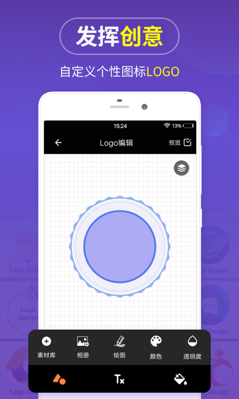 它支持多种类型logo设计,发挥出个人创意,轻松绘制出合适样式,创造出与众不同的设计,让用户们秒变大师,快速制作美丽图标。