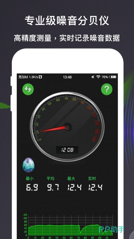 最快软件又被称之为噪声计,它是通过专业的数据变化以及图表变化来表达噪音变化的一款检测的软件,随时随地都可以图标通过图表查看分配值的变化情况,并且计算出不同时间段的分贝值以及音量变化,利用麦克风检测。