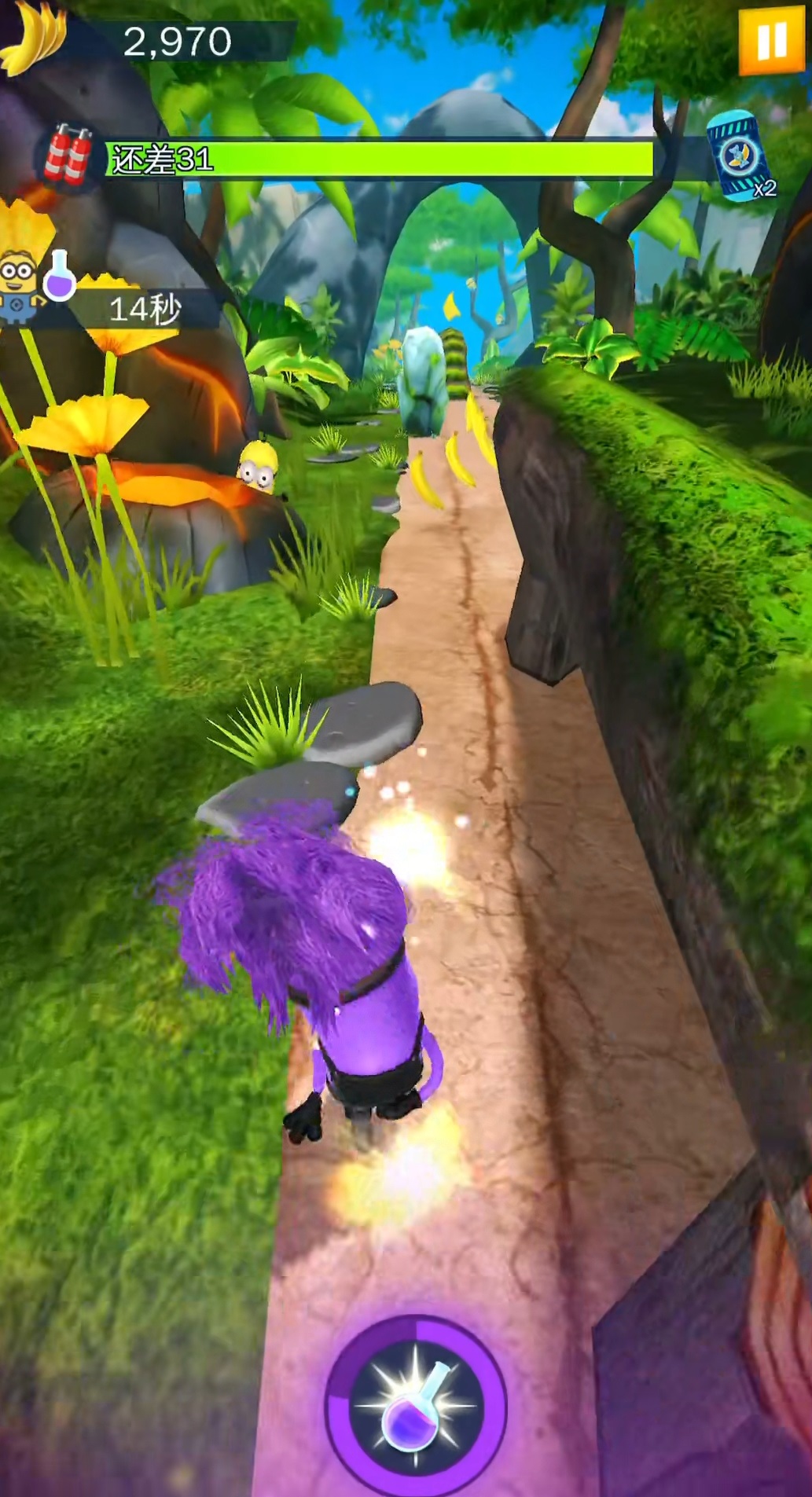 在游戏中你将化身小黄人在各种奇妙的场景中奔跑。你可以拾取一路上碰见的道具来让你的跑酷更加惊险刺激,沿途的香蕉也要记得收集,这是让你获得高分的关键。