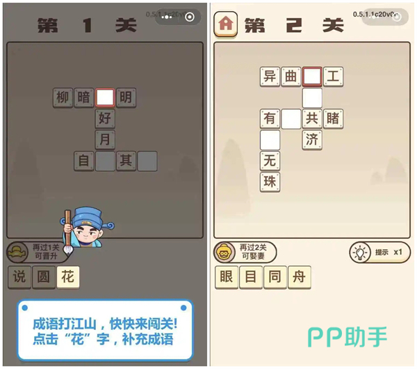 从古到今累积有成千上万条四字词语,这个游戏精选浓缩几百个与成语有关的场景小动画,帮助玩家轻松了解常见的成语寓意,还能进行老少咸宜的成语接龙、成语解谜游戏,寓教于乐,学习变得更为有趣。