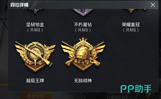 热血青铜、不屈白银、英勇黄金、坚韧铂金、不朽星钻、荣耀皇冠、超级王牌、无敌战神