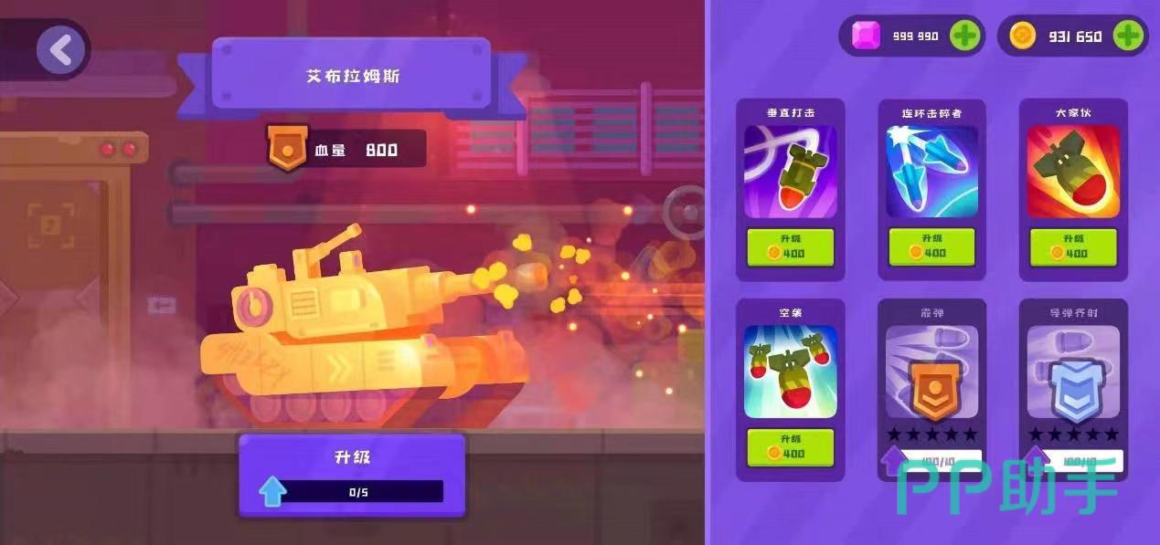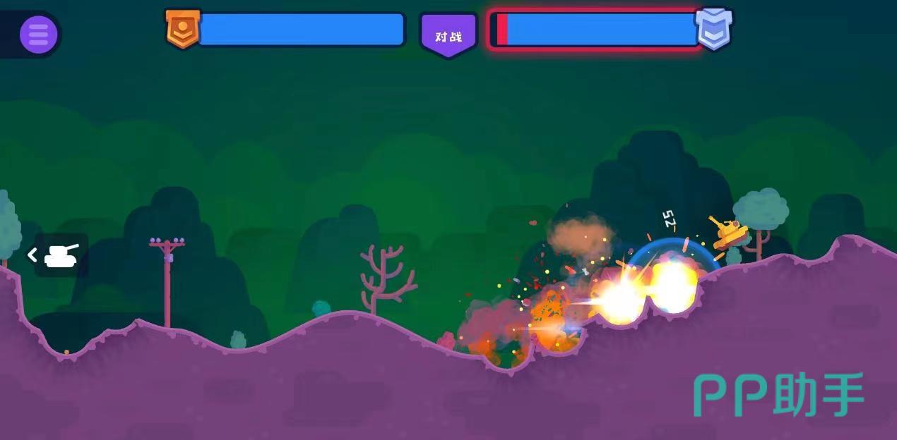 在战斗场景中能够以摇杆的方式控制坦克的左右进行移动,同时炮口的角度也可以根据需要调整实现精确的打击,操作很简单。但是在武器和炮弹的选择上却非常关键,可以选择单发伤害高一发入魂,也可以选择范围伤害高进行群体杀伤。因为在游戏中存在地形上的差异,有些地形天然就是掩体,所以发射的角度也直接影响命中的效果。选择好武器后还能够进行升级,升级后将能获得更炫酷特效以及外形。