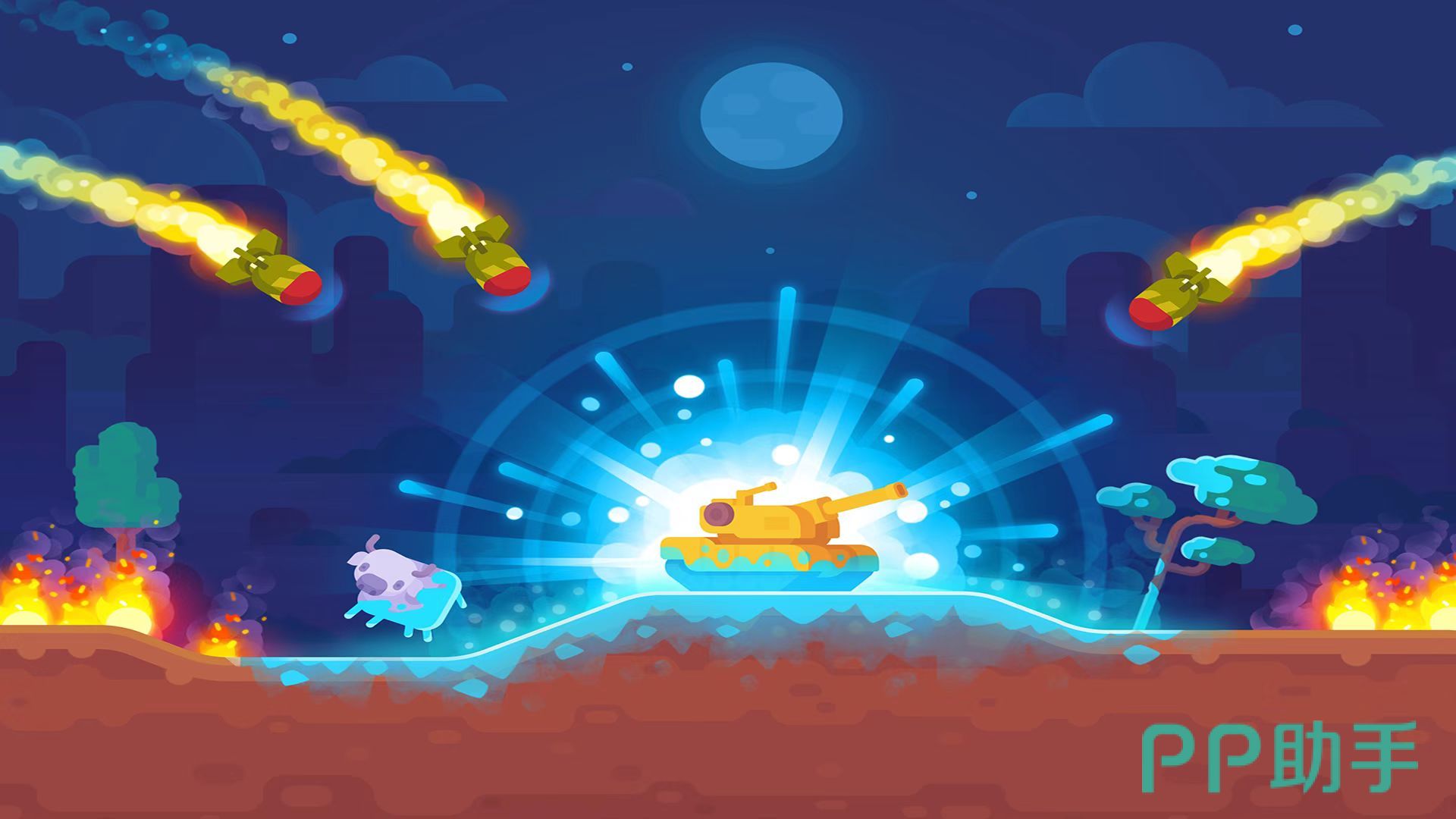 游戏最大的特点就是选择了非常卡通的画风来进行坦克以及周围环境的设计,虽然只是简单的线条组成,但是在开火和命中的瞬间依然会有精致的特效。操作上也很简单,只需要瞄准敌人,然后发射炮弹就可以了。当然其中也有操作的元素,因为在炮弹的弹道上完全遵循物理学规律,是一条抛物线,这样可以通过计算敌方的位置、角度来选择合适的攻击方式。