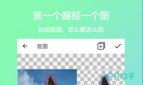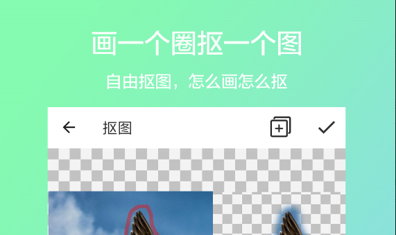 小巧玲珑的一款抠图软件,在操作面板上,只需要轻轻画出一个圈,就可以轻松将图片抠下来,不仅好操作易上手,并且软件本身只有30多MB大小,极大程度的节省了用户们的手机内存。