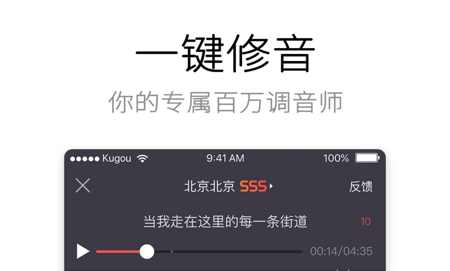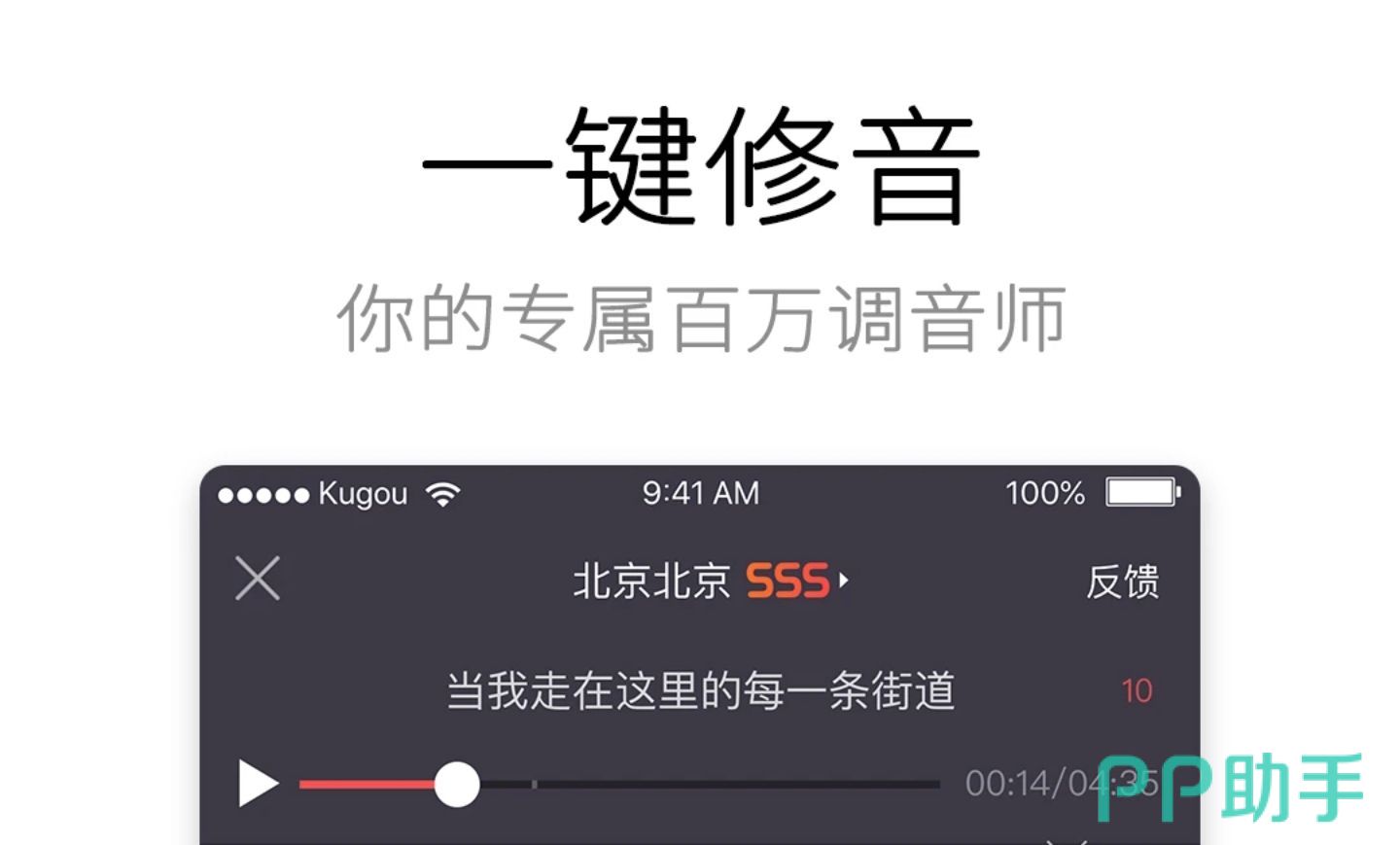 作为酷狗音乐旗下的一款专业k歌应用,能够针对用户的k歌作品做出一个专业的评分,而在人工工修音和高品质伴奏的加持下无论你是五音不全的k歌小白还是大神都能够唱出动人心弦的歌曲。