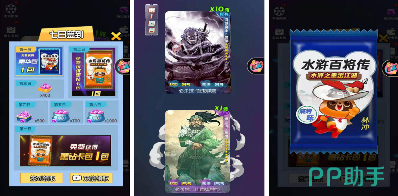这是一款类似童年集卡pk的游戏模式,游戏有着独立且随机性超强的抽卡模式。在与他人单挑时,你将对比武将的攻击力和防御力,同时每个人物还带有自己的特殊必杀技让你赢在起跑线上。