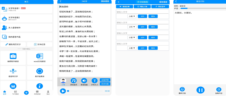 软件的操作方式非常简单,只用手动录入文字,软件即可自动使用语音播放的方式将其识别出来。语音播放的形式也非常多,普通话、方言、外语应有尽有,用户可根据使用的场合来自行选择。