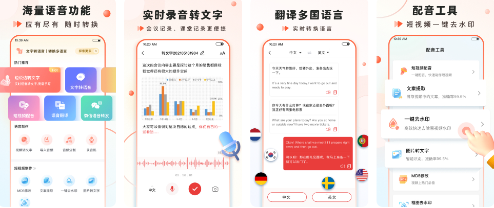 用户身边的好帮手,可实现语音、文字、音频、图片四方面的相互转化功能,转化结果保存后用户可随时进行编辑,直到成品满意为止。后续还可以一键分享到其他app,非常的方便。