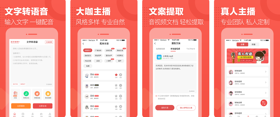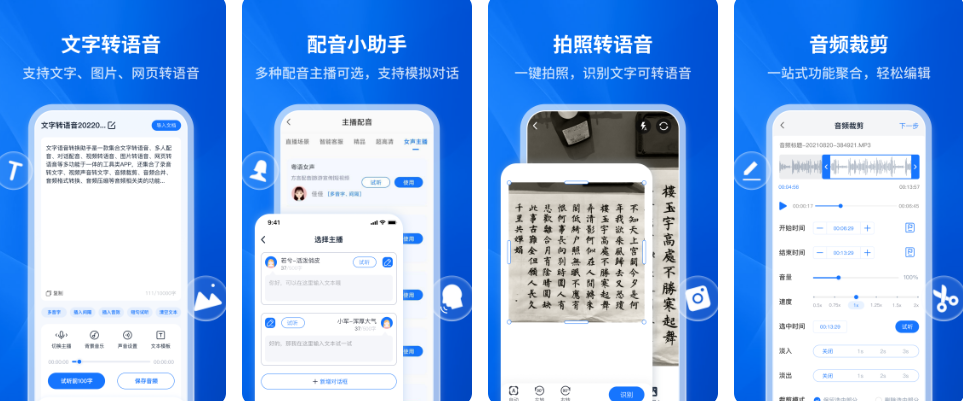 软件集文字换语音、真人配音功能于一身,便捷的AI配音,文字可一键合成机器人语音。多样化的真人配音,每个配音员都经历过专业培训,在这里一定能找到你想要的声音。