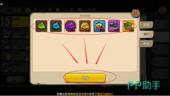 宠物获取的第二种方法是通过碎片合成。宠物碎步合成的方法和步骤具体如下: