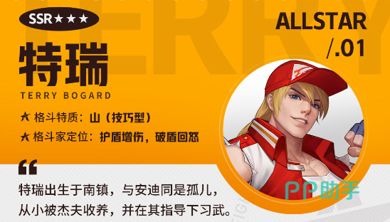 特瑞出生在南镇,是个孤儿,无依无靠。之后便被杰夫所收养,但可惜的是幸福的时间总是短暂的,之后杰夫被害,凶手是吉斯然后就是固定的为师傅报仇的戏码。安迪的话知名度很高,主要是归功于他是不知火舞男友的身份。那么东丈的话,就是他的那个头发相当的有辨识度。