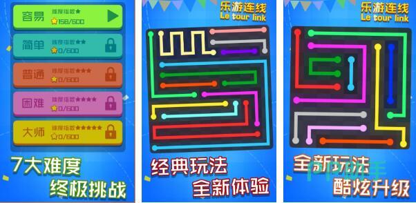 这是一款来连看类型的手游,玩法非常有趣,就是将途中出现的相同颜色的点用线连起来,但是唯一的要求就是所有的线都不可以有交叉点,这样难度就增加了许多,这款游戏可以很好的锻炼孩子的专注力哦,快来下载试试看吧!