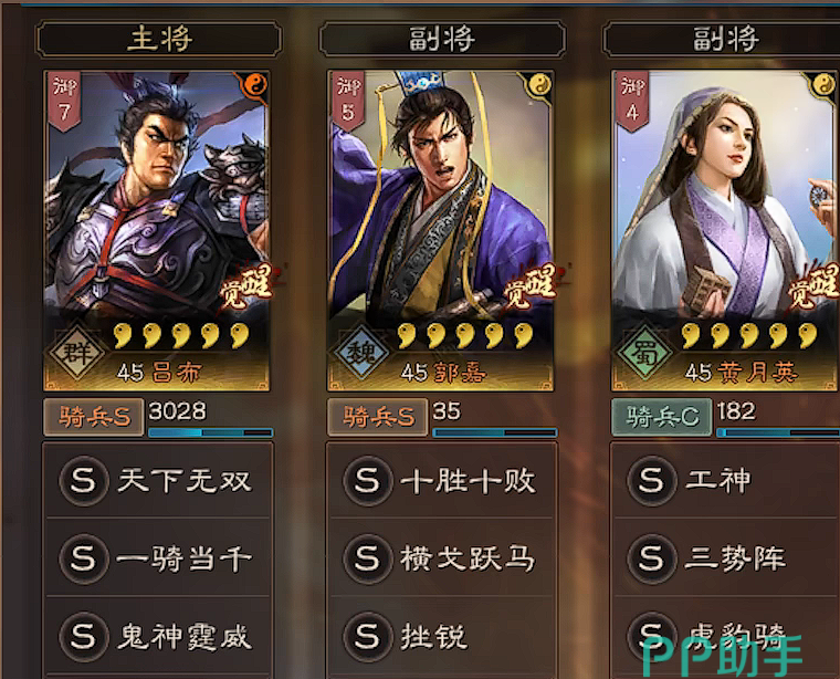 作为当前版本最稳定的队伍,富贵骑有着其他队伍无可比拟的保证性。它的核心思路是通过大量的警戒来保证自身的生存程度,并通过贾诩的混乱带来极高的上限。主力输出是靠郭嘉的战法,来保证有一定的伤害。简单来说就是苟,并且有着不俗的伤害。