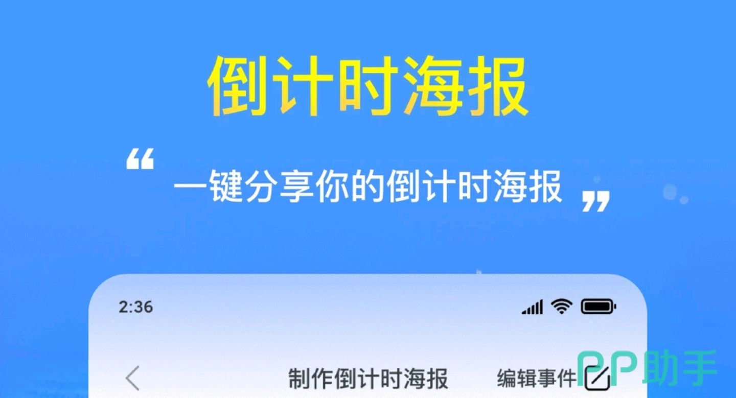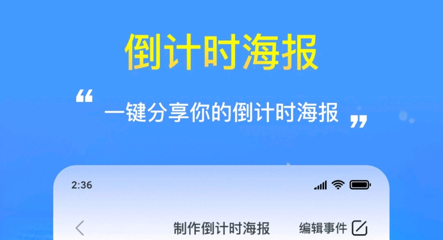 主要的宗旨就是让重要的日子一目了然,可以通过生成一款倒计时海报以桌面组件的形式提醒用户,除了改变字体,报样式和背景图之外还能够编辑事件,让记录变得有趣生动起来。