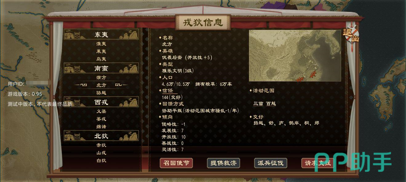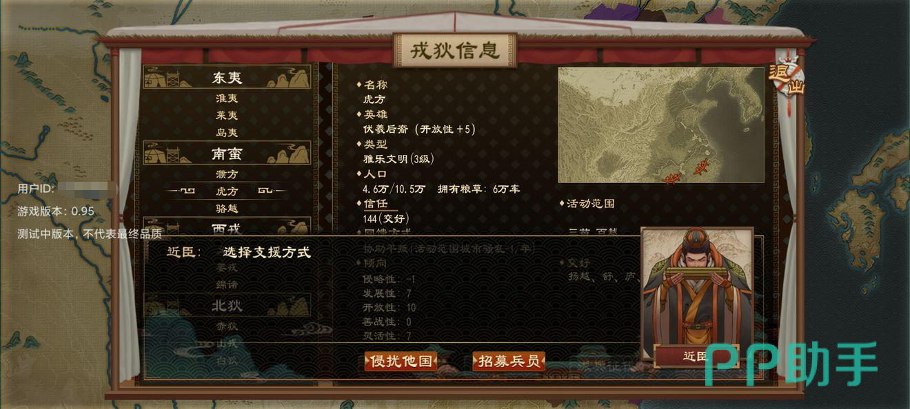 1、兵力援助:这个大家可以多多关注一些,平时可以好外面的使者进行交好,只有打到了120的信任值,且这个队伍有7500的人口,那么在出战的时候可以请求他们进行援助。