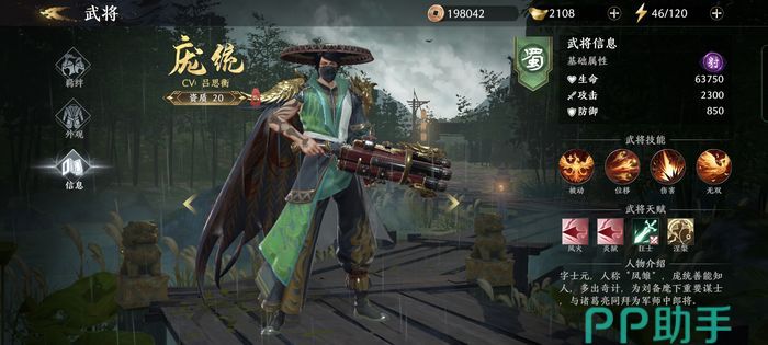 4.四金垫底但是输出强力的角色:【庞统】作为开服四金没有实力怎么敢自称金卡的,资质二十档位置,签到活跃度获取,微氪可以增加获取速度算是可以“白嫖”的角色,定位是射手,主要依靠高暴击的伤害对敌人造成大量的输出,现在也没玩家获取,虽然人气垫底但是潜力无限,当到一定时间之后作为输出还是能争一争强度排行的,但是被动设置有点傻复活的眩晕描述不知道带不带无敌,如果有的话将是异常强力的,如果没有就很呆了,让人骑脸输出等于没有这个被动。