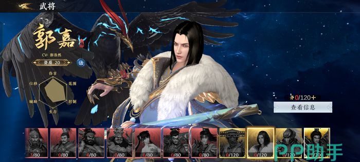 2.现在版本称王称霸王的角色:【郭嘉】法术版小【吕布】,【累充】和坐骑【爪黄飞电】一起获得的角色,攻击频率贼高的法术收割机,还有被动的和的技能恢复能力,现在的排行大佬的队伍主力角色,开服四金之一,在吕布没出来的这段时间就是最强的存在。