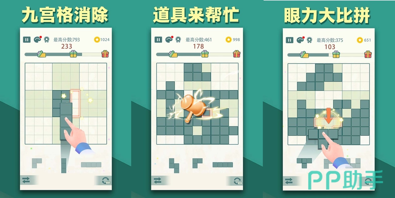 以上小编推荐的几款游戏就是2022耐玩的九宫格方块游戏在哪里,推动脑筋不断思考,游戏贴心设计从简单到困难的模式,给玩家充分发挥的游戏空间和思考能力。