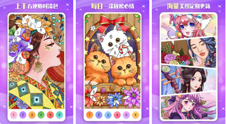 《魔力涂色》大家可以想变魔术一样把这个画作从白变到彩色,其中的各种图案也会定时进行更新,大家可以通过其中的每一幅画作来找到自己喜欢的涂色风格,这也是你的艺术熏陶过程。