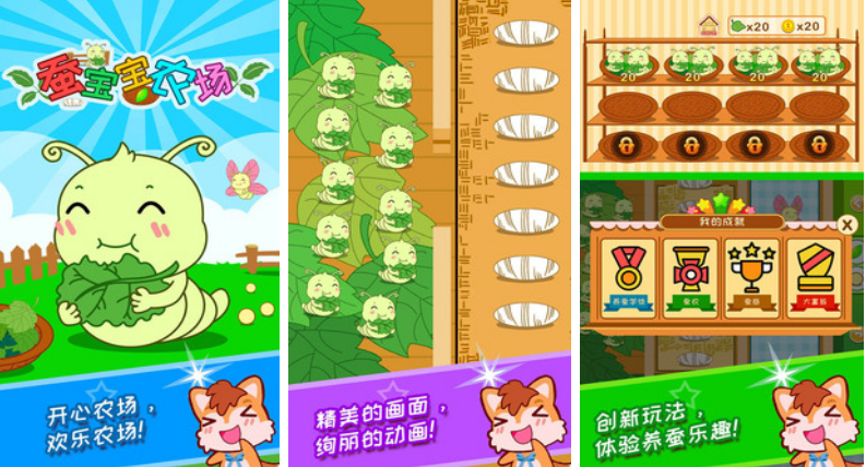 蚕宝宝农场就是典型的田园类型的养成游戏,游戏中玩家需要模拟养蚕的过程,在农场中种植植物,当一个富裕的农场主,这款游戏将给玩家们带来一场独特的模拟体验。游戏中有着贴心的教学,会让所有玩家们感觉真的在田园中一样。游戏中的奖励有很多,有等级的奖励、成就的奖励,让玩家有了奋斗的目标。