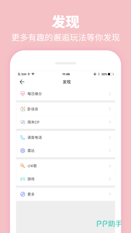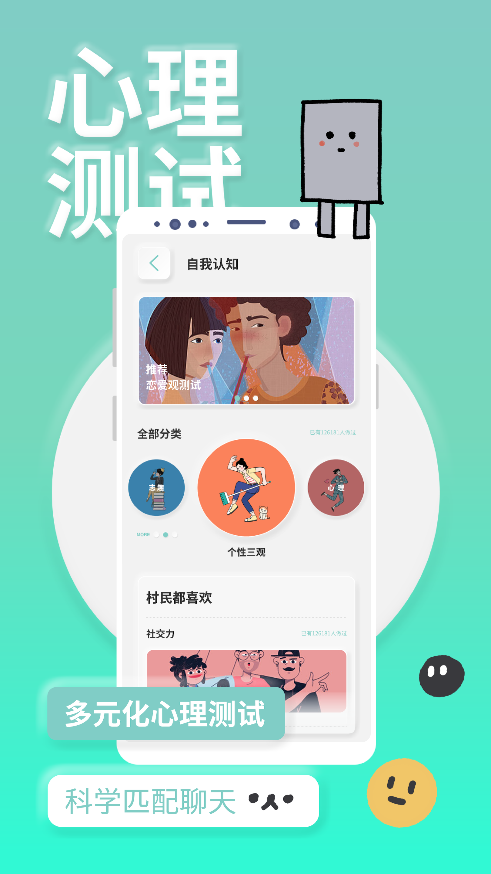 软件以交友、恋爱、约会、扩列、树洞聊天为主要模式,通过简单的30兴趣测试,便会为你匹配一些适合你的人。你还可以在广场中发布那些不能在朋友圈中抒发的情感。