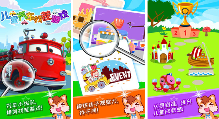 《儿童汽车找茬游戏》这款游戏如果是男生宝宝估计玩起来就不会搭理妈妈了,因为其中的各种找茬图案中出现的是汽车,小汽车是小朋友们最喜欢的玩具啦,即时出现在游戏中也是很多小朋友都爱的。