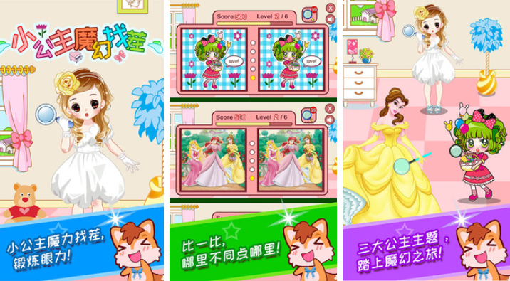 《小公主魔幻找茬》这款游戏汇总你可以锻炼你的眼睛,看看你平时仔不仔细,其中的公主主题在游戏中是很多玩家都喜欢的画面,但是因为其中的色彩太多,所以大家找的时候也是有难度的。