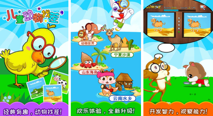 《儿童动物找茬游戏》这款游戏中最有趣的是各种小动物的表情是非常可爱的,这款游戏的受众大多数都是小岁数的宝宝,它们在玩的时候可能找得到的不一样地方不多,所以都设置的比较简单。