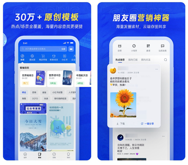 大受好评的一款设计工具,能够广泛用于传单、海报、封面、长图的设计和制作,软件有一个很大的特点,也算是强大的功能,那就是最短仅需要使用三个步骤就能够进行封面的制作,通过挑选模板、更换样式、添加素材就可以做到,而且效果也是相当不错的。