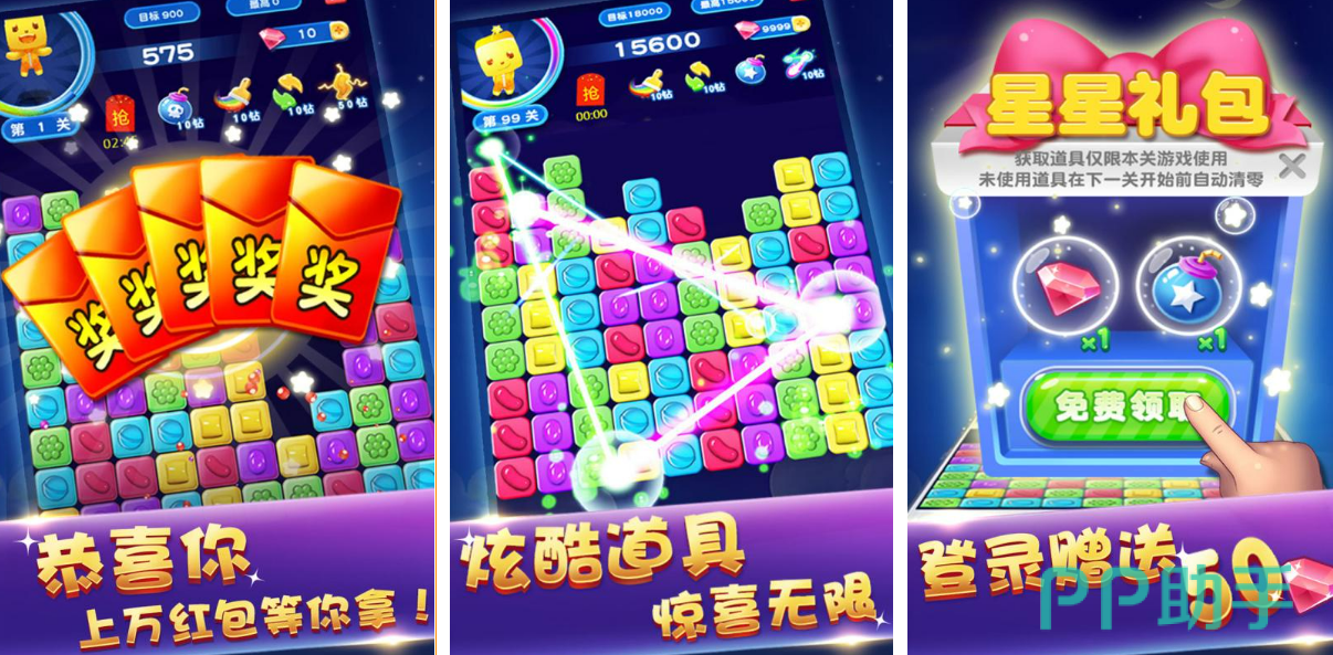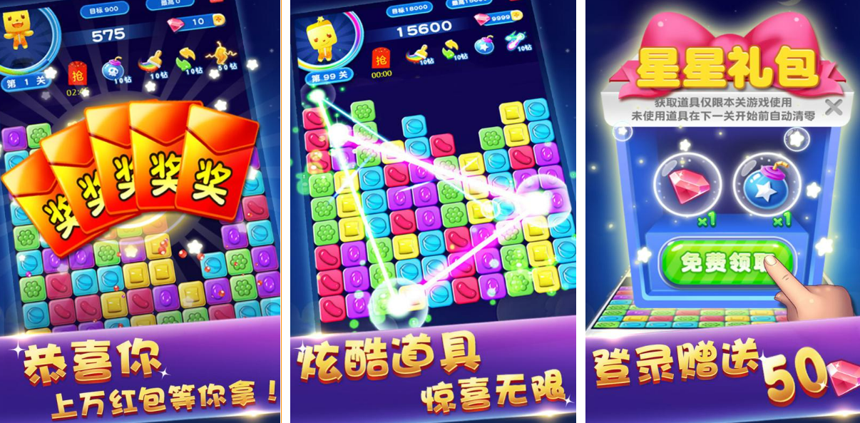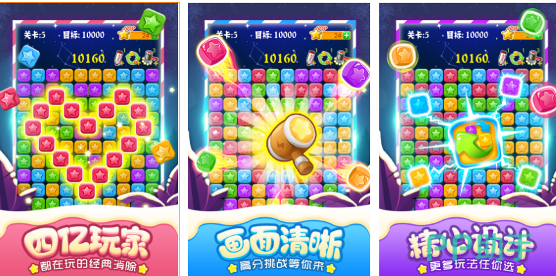 消灭糖果星星也是一款类似于消灭星星的解压小游戏,游戏中有很多诱人的福利,玩家初次登录消灭糖果星星就会获得很多的道具,这些道具可以帮助玩家获得比较高的分数,游戏的特效、音效做的都很完美,温馨提示,消灭糖果星星这款游戏特别容易上瘾哦,大家需要在放假的时候玩。