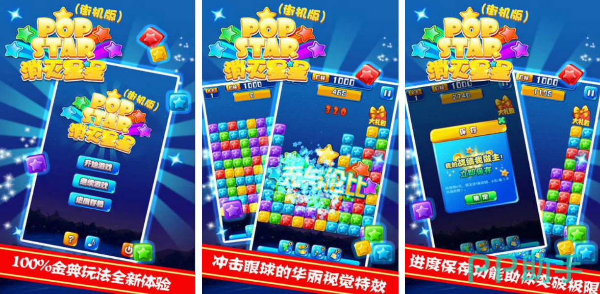 没体验过消灭星星(街机版)的玩家要谨慎哦,因为这款游戏玩上就停不下来哦,消灭星星(街机版)的下载量超高,游戏中加入了很多考验脑力的玩法,一味的点点点已经无法通关了。消灭星星(街机版)的每一关必须分数达到了才可以通关,但是游戏里没有时间倒数,想要得到更高的分数就要消灭足够的星星。