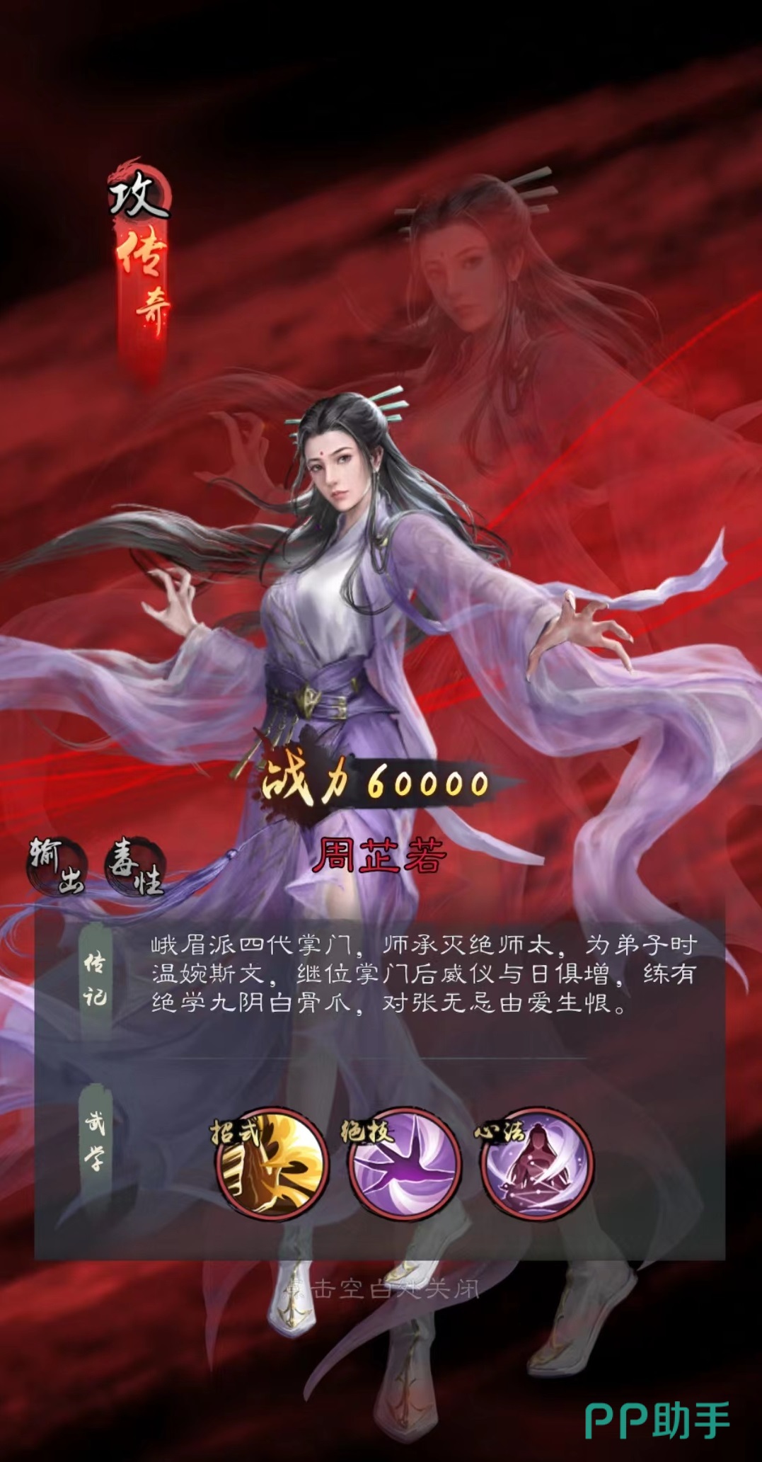 目前根据大家的选择最强悍,也是最受欢迎的攻击侠客有周芷若、火工头陀、阳顶天,张三丰、灭绝师太和青翼福王。其中周芷若是目前人气最高的一个,作为峨眉派掌门,技能九阴白骨爪可以伤害对方全体,并且对已经中毒目标则额外提升暴击率。在九阴心法加持下,使用普攻能够有几率使伤害目标和与其相接的单位中毒。周芷若是典型的输出小循环,自己可以创造出中毒效果,然后强化自身的大招,不需要其他角色配合。