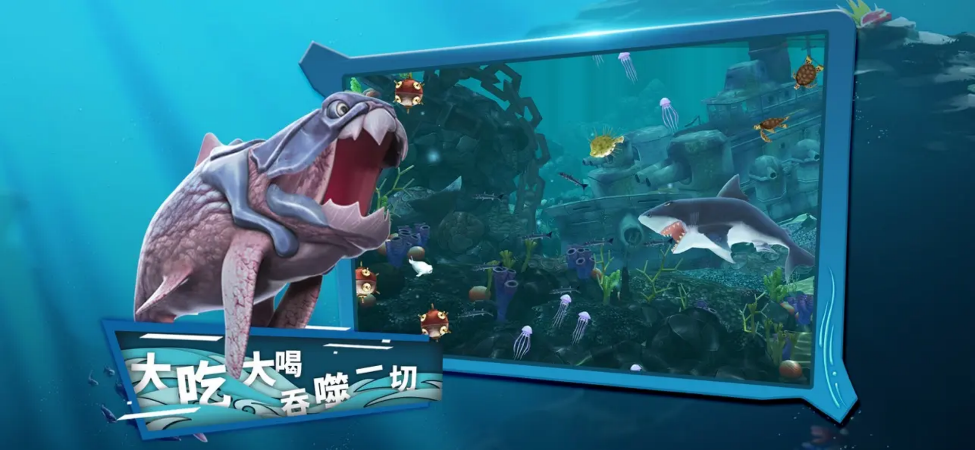《饥饿鲨:进化》这款游戏对于许多看过大白鲨电影的小伙伴算是一部福音,在游戏中,玩家将化身鲨鱼,切实体会海洋食物链中顶级强者的霸道,无论是其他鱼类,还是人类的飞机,轮船,最终全都将在饥饿鲨的血盆大口沦为残渣!