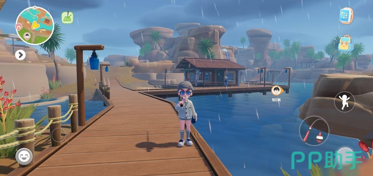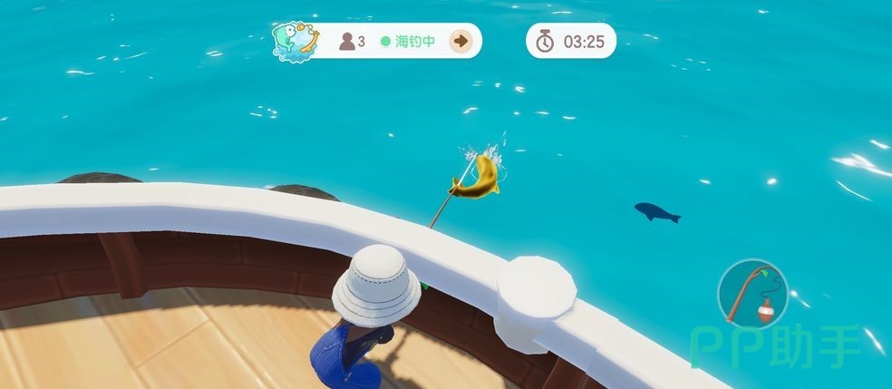 在游戏中钓鱼的方法很简单,在可以钓鱼的地方屏幕上是会出现钓鱼功能图标的,点击它之后就是抛出鱼竿等待鱼儿上钩,需要注意的是这里的图标是要长按的,在震动后长按,如故宫鱼线在红黄色之间变换,就先松开,等其变成白色再继续按着。