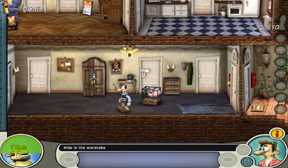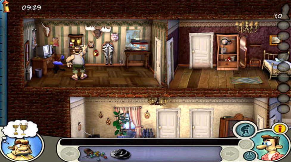 《整蛊邻居》左下角会出现你凶恶邻居的头像,它的头像会根据你每一次的恶作剧来开始集满绿色的怒气,大家的目的就是要集满怒气惹怒这个邻居,你每一轮游戏中可以使用的整蛊方式不同,能够得到的怒气值也不同。