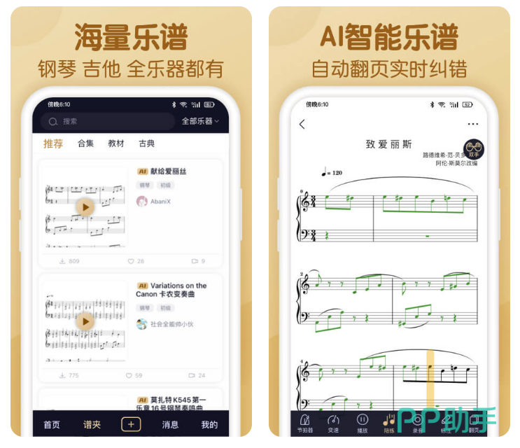 对于钢琴初学者来说绝对是一个福音,本作主要针对的就是电钢琴以及传统钢琴的学习辅助,并且为用户提供了大量经典的钢琴谱。不止如此,用户也能够选择自己导入或者是进行曲谱的制作,操作比较简单,就算是零基础也可以迅速掌握。