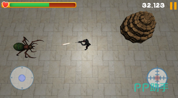 本作不管是玩法、画面、操作模式还是整个流程的体验都是比较简单的,这也对得起100MB的容量。游戏为双摇杆设计,左侧摇杆控制人物移动,右侧为设计按键。在场景战斗中击败敌人可以获取它们掉落的血包、子弹,运气好的话还能够获得更加强大的武器。总体来说本作的设计理念还是比较复古的,对于一些老玩家来说还比较熟悉的,推荐大家尝试一下。