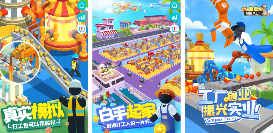 《超级制造工厂》这款游戏中,玩家将扮演一位白手起家的青年,从一间小规模的工厂开始建设,完整的体验招募员工,建设产线,对接客户等相关流程。在获得一定收益后,玩家还可将工厂规模扩大,添设新的产品。游戏内工厂可涉足的产品包括但不限于果汁,汉堡和肉制品等多种类型!