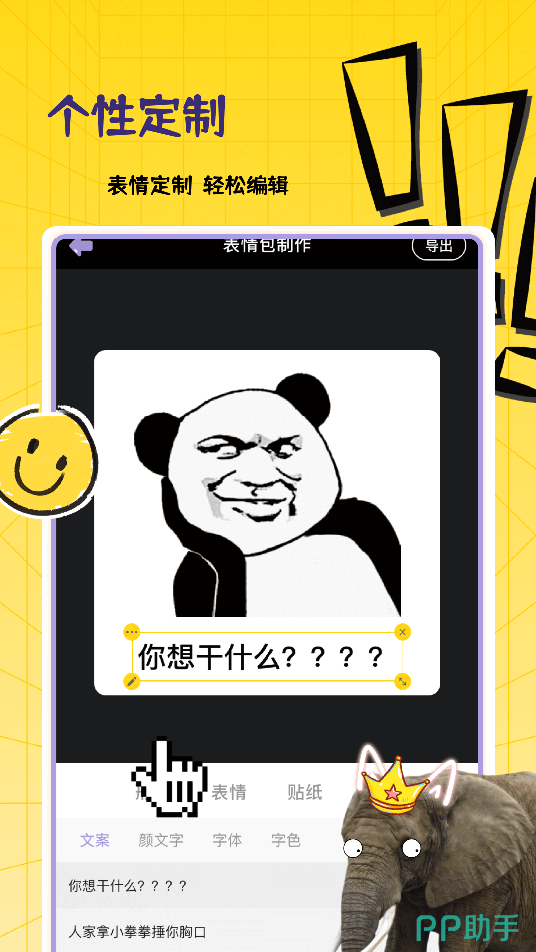 软件拥有海量壁纸、头像、表情包,支持对鸭等原创表情包制作,通过简单几步制作表情包,打造emoji、颜表情、搞笑、网络热门、动漫卡通、GIF等多样表情包。